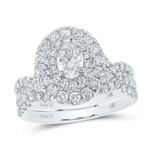14kt White Gold Oval Diamond Halo Bridal Wedding Ring Band Set 2 Cttw