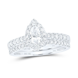 14kt White Gold Pear Diamond Halo Bridal Wedding Ring Band Set 1 Cttw