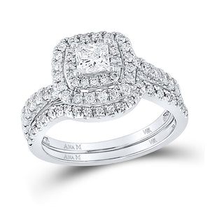 14kt White Gold Princess Diamond Halo Bridal Wedding Ring Band Set 1 Cttw