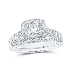 14kt White Gold Princess Diamond Halo Bridal Wedding Ring Band Set 1 Cttw