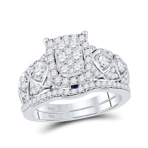 14kt White Gold Round Diamond Bridal Wedding Ring Band Set 1 Cttw