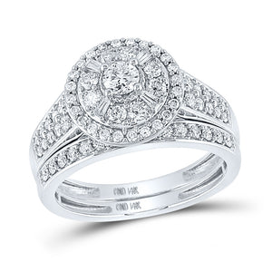 14kt White Gold Round Diamond Bridal Wedding Ring Band Set 1 Cttw