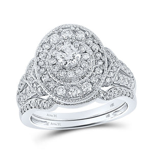 14kt White Gold Round Diamond Oval Halo Bridal Wedding Ring Band Set 1 Cttw