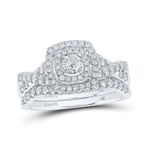 14kt White Gold Round Diamond Halo Bridal Wedding Ring Band Set 1 Cttw