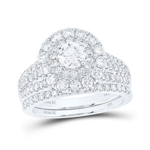 14kt White Gold Round Diamond Halo Bridal Wedding Ring Band Set 2 Cttw