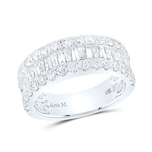 14kt White Gold Womens Baguette Diamond Anniversary Ring 2 Cttw