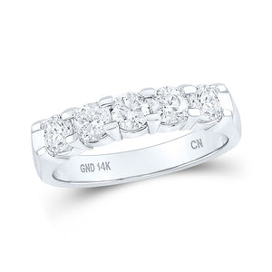 14kt White Gold Womens Machine Set Round Diamond 5-stone Wedding Band 1 Cttw