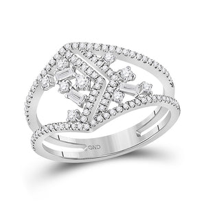 14kt White Gold Womens Round Diamond Modern Geometric Band Ring 3/8 Cttw