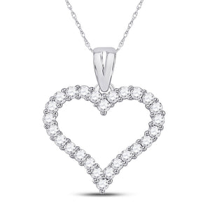 14kt White Gold Womens Round Diamond Outline Heart Pendant 1/2 Cttw