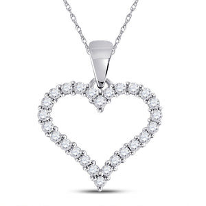 14kt White Gold Womens Round Diamond Outline Heart Pendant 1/4 Cttw