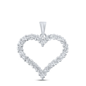 14kt White Gold Womens Round Diamond Outline Heart Pendant 1 Cttw