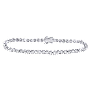 14kt White Gold Womens Round Diamond Timeless Tennis Bracelet 2 Cttw