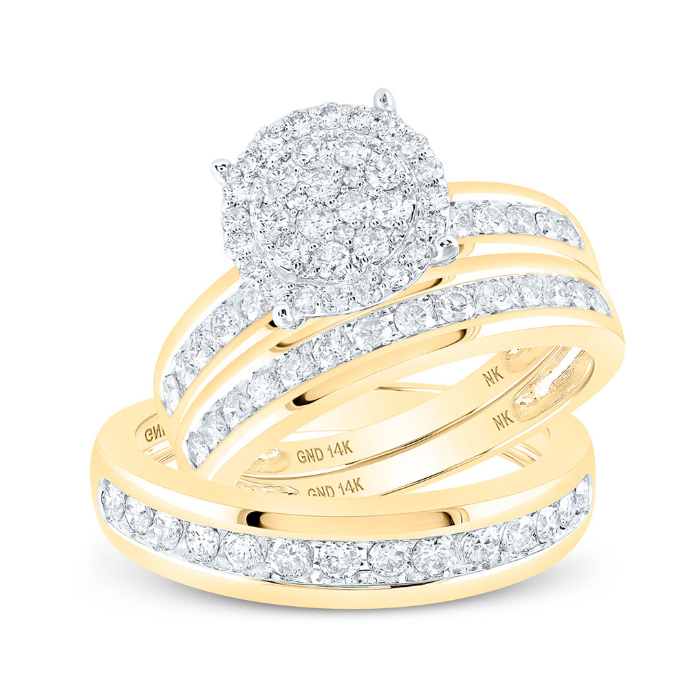 14kt Yellow Gold His Hers Round Diamond Cluster Matching Wedding Set 1-1/2 Cttw