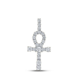 14kt Yellow Gold Mens Round Diamond Ankh Cross Charm Pendant 1/5 Cttw