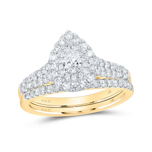 14kt Yellow Gold Pear Diamond Halo Bridal Wedding Ring Band Set 1 Cttw
