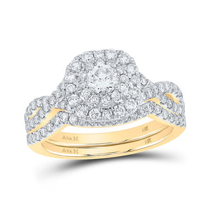 14kt Yellow Gold Round Diamond Halo Bridal Wedding Ring Band Set 1 Cttw
