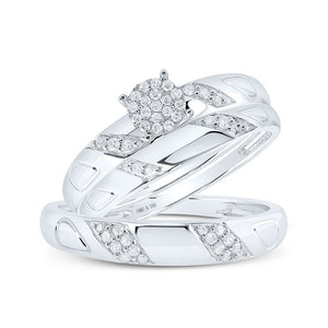 Sterling Silver His Hers Round Diamond Cluster Matching Wedding Set 1/4 Cttw