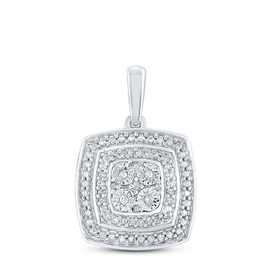 Sterling Silver Womens Round Diamond Square Pendant 1/12 Cttw